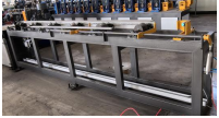 The steel strip enters the forming machine and is roll-formed through ten passes to produce anchor bolt bodies in six specifications with diameters of 39mm, 40mm, 43mm, 44mm, 47mm and 48mm respectively. The main shaft of the anchor bolt has a diameter of 70mm and adopts a left and right thread design. Both sides of the roller are equipped with double lock nuts and lock washers to prevent roller loosening. Driven by a 15kw three-phase asynchronous motor, the power is transmitted to each forming shaft through a power distribution box after being decelerated by a reducer, ensuring balanced power and synchronous speed of each forming shaft. Wireless remote control for start and stop is available.